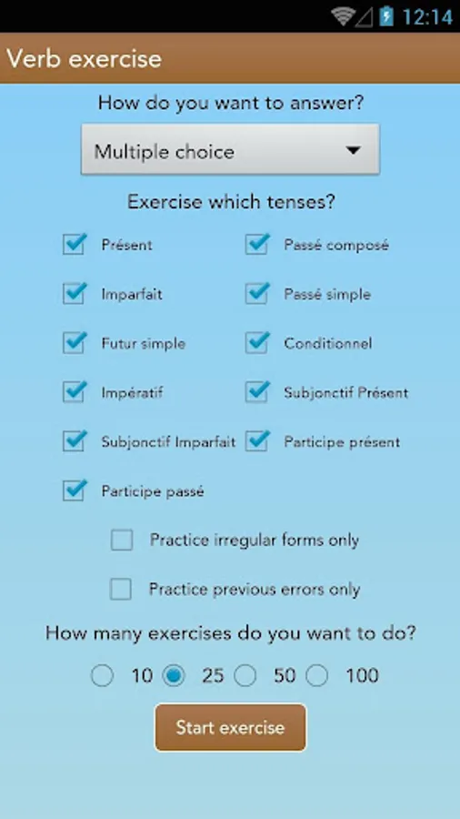 * Highly customizable exercises on all of the above, with a fun awards system which makes practicing fun, with separate awards for the vocabulary, verbs, grammar, listening and speaking exercises.