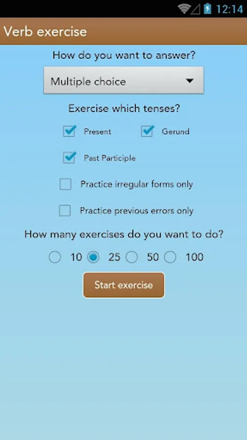 * Highly customizable exercises on all of the above, with a fun awards system which makes practicing fun, with separate awards for the vocabulary, verbs, grammar, listening and speaking exercises.