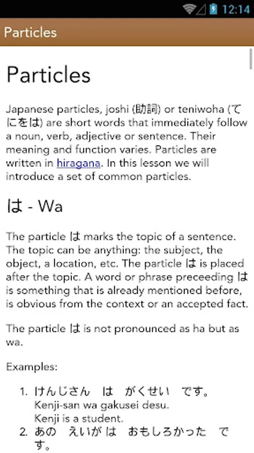 Japanese Class contains a complete written offline Japanese course, together with interactive vocabulary and grammar exercises.
