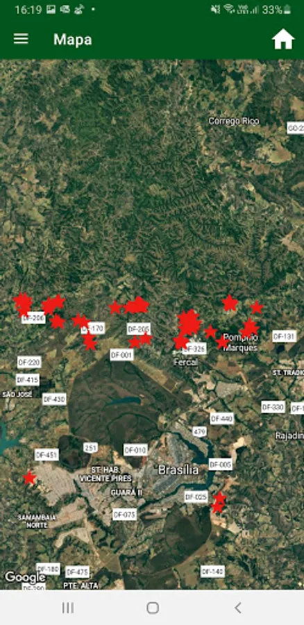 Being connected to the internet, the App brings the functionality of connection with Google Maps, allowing the visualization of its database with high definition satellite images.