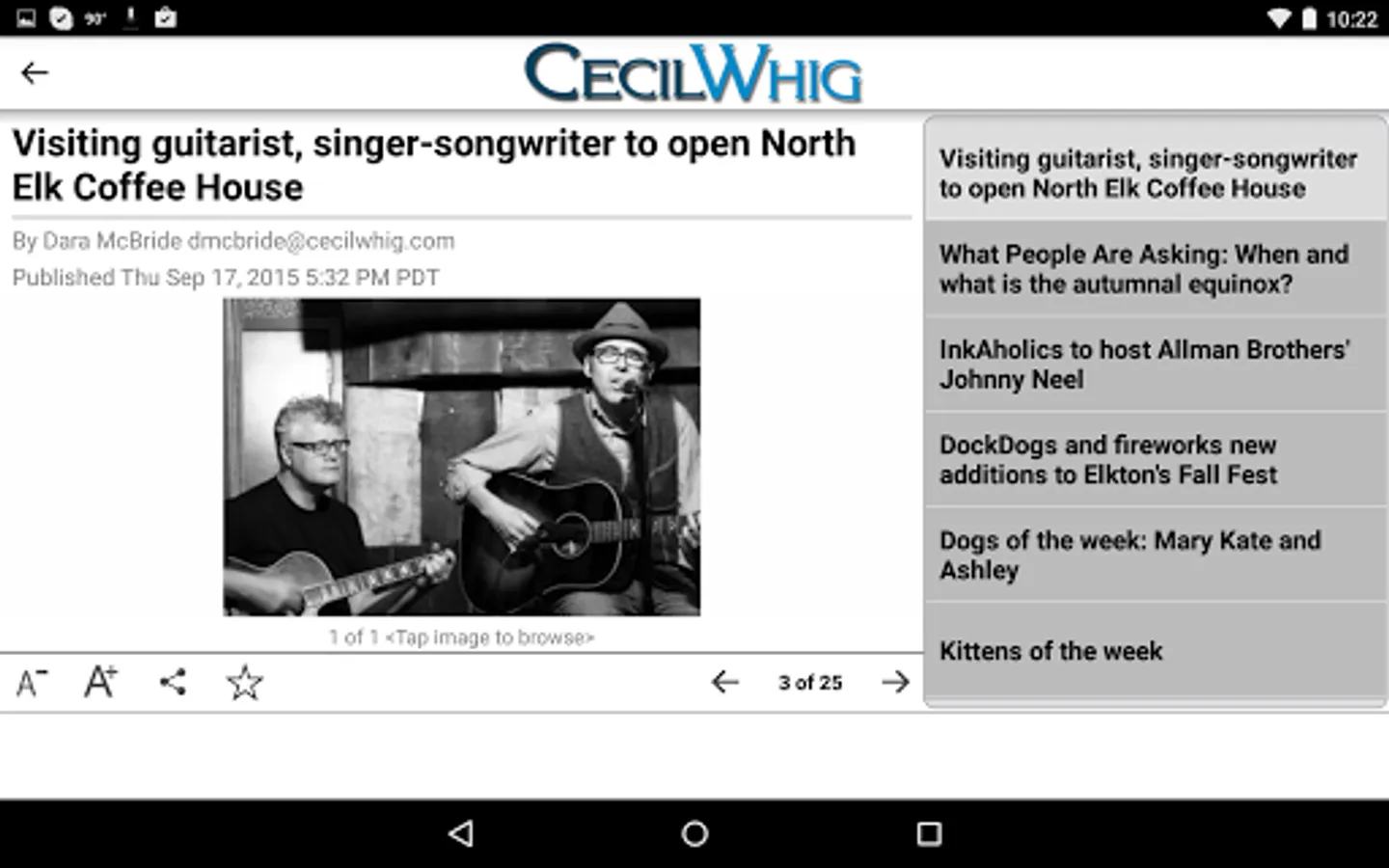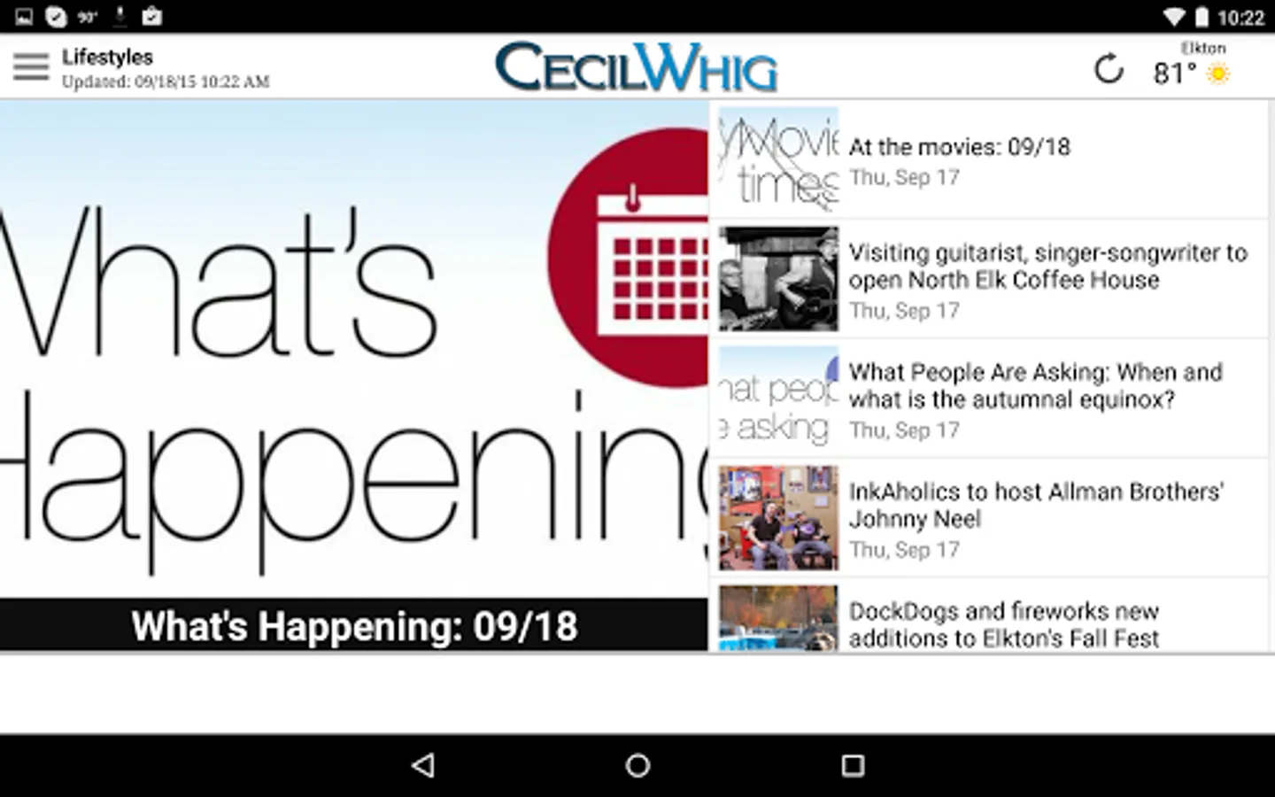 The CecilDaily app brings you the latest local, sports and community news and information from the Cecil Whig 24/7. The free app is updated from our full site cecildaily.com in realtime delivering you headlines from the past three days.