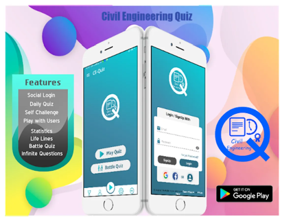 It has got the option to login (social), bookmark and play unlimited number of levels on all Civil Engineering subjects. Also, it has got the option to show statistics on you subject interest and score, questions are updated regularly with new topics and recent development. An useful app for students and for people interest in Civil Engineering. The app has got option for Battle Quiz with random online user or play with Robot. You can all test your skill with Self Challenge mode with time limit, also includes option for Daily Quiz.