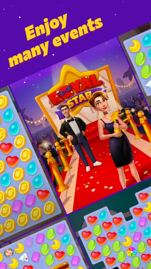 You'll solve intriguing puzzles, earn coins to open new sections, decorate Queen Emma's scene, and acquire extra boosters to continue your adventure on this enjoyable voyage. You can also compete in events like the Queen's Cup, Hyper Race, Fame Battle, and Star Rush against millions of other players for amazing rewards. In Royal Star, the fun and challenge never stop, and there is never a dull moment.