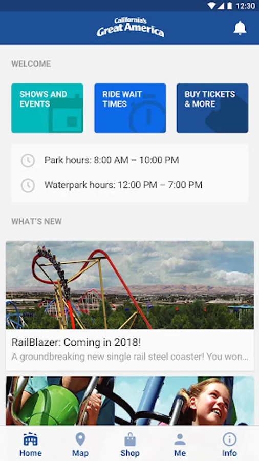 The official, California's Great America app! Get more out of every day at the park with ride wait times for your favorite rides, an interactive guide map that will help you find the fastest route to any place in the park, easy access to your FunPix photos, a complete listing of all the entertaining shows and events, including show times, so you won’t miss a minute of the action. Buy tickets or store your Season Pass on your phone and receive special offers and discounts only available to app users. Everything you need to make your day at California's Great America the best day ever!