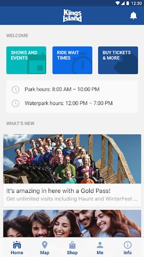 The official, Kings Island app! Get more out of every day at the park with ride wait times for your favorite rides, an interactive guide map that will help you find the fastest route to any place in the park, easy access to your FunPix photos, a complete listing of all the entertaining shows and events, including show times, so you won’t miss a minute of the action. Buy tickets or store your Season Pass on your phone and receive special offers and discounts only available to app users. Everything you need to make your day at Kings Island the best day ever!