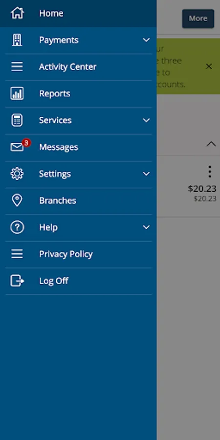Our mobile banking application allows you to check balances, transfer funds, view transactions and check messages from anywhere, anytime. It’s fast, free and available to all of our online banking users. With this app you can do the following: