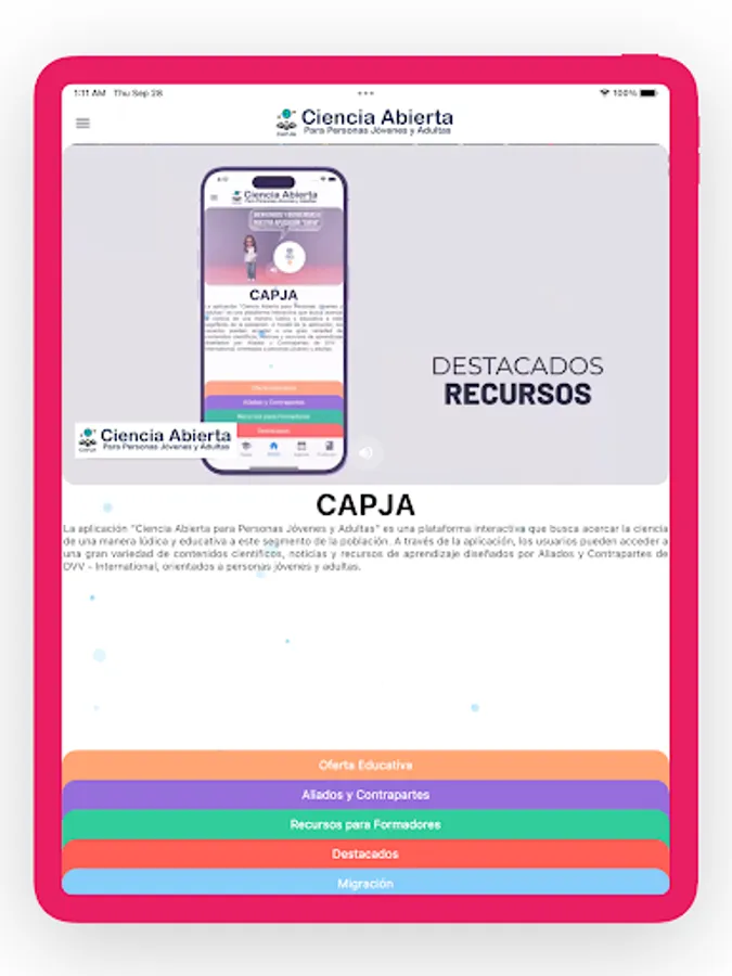 The "Open Science for Young People and Adults" application is an interactive platform that seeks to bring science closer to this segment of the population in a fun and educational way. Through the application, users can access a wide variety of scientific content, news and learning resources, specifically designed for young people and adults with different levels of knowledge.