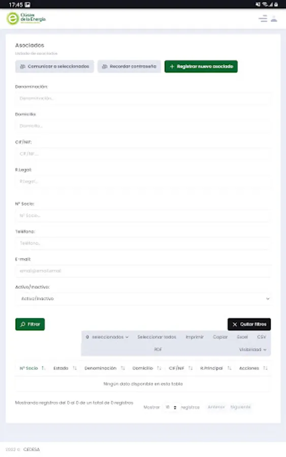 Application for the Extremadura energy cluster
