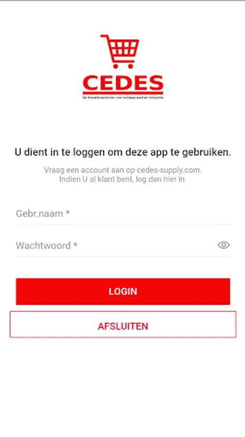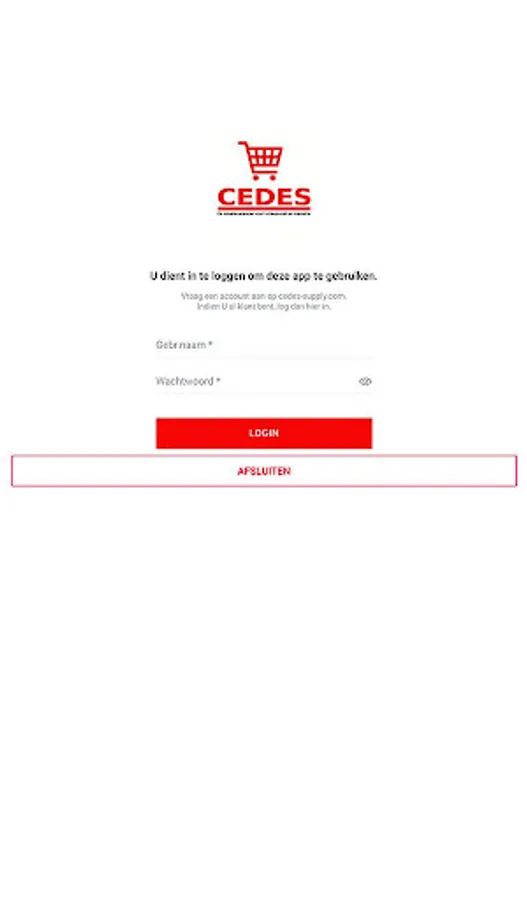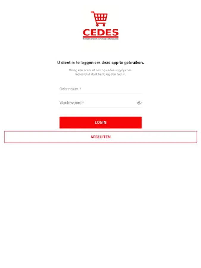 Request an account at https://cedes-supply.com in order to use this app.