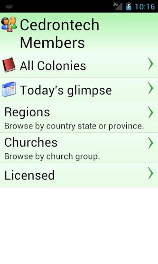 As soon as the application is installed, you have access to Hutterian geography, contact, and population data. This aspect of Members is free and available for anyone.