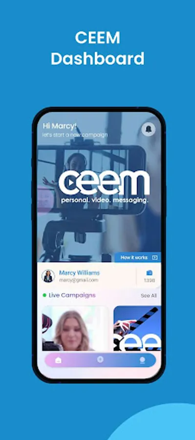 The CEEM personalized video messaging mobile app’s main goal is to help and assist our clients to manage and create a variety of Advertising and Communications campaigns as set-up via the CEEM personalized video marketing campaign platform (available at www.ceem.com). CEEM accounts can be set-up for free via the CEEM website or mobile app.