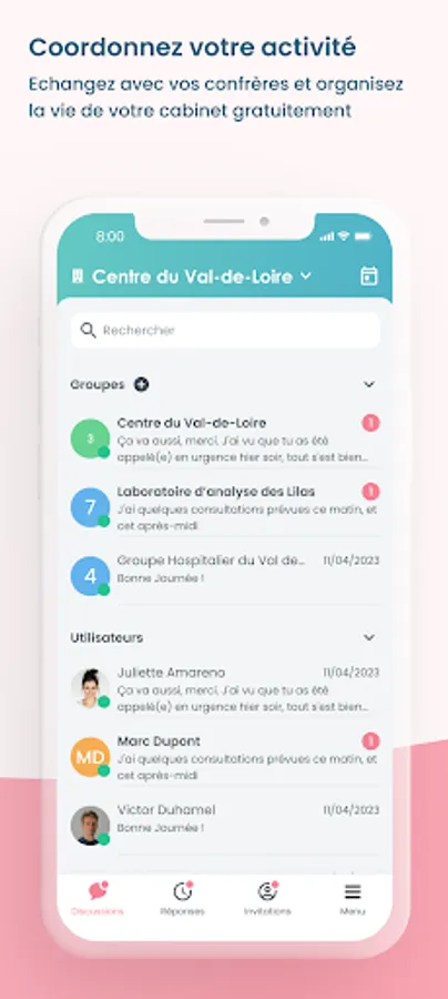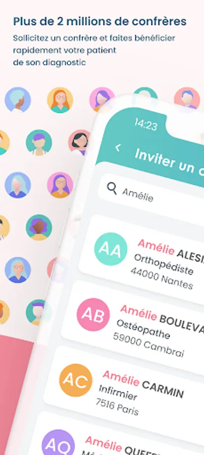 More than 2 million colleagues are just a click away to discuss and coordinate the care of your patients; communication is facilitated by sending documents, audio messages and sharing patient files.