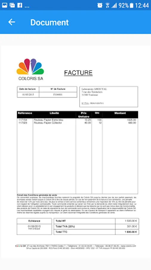 Automatic identification of the supplier, dates, amounts and No. allows the accounting software receiving these elements to benefit from an efficient invoice processing and to have a supporting image associated with each accounting entry.