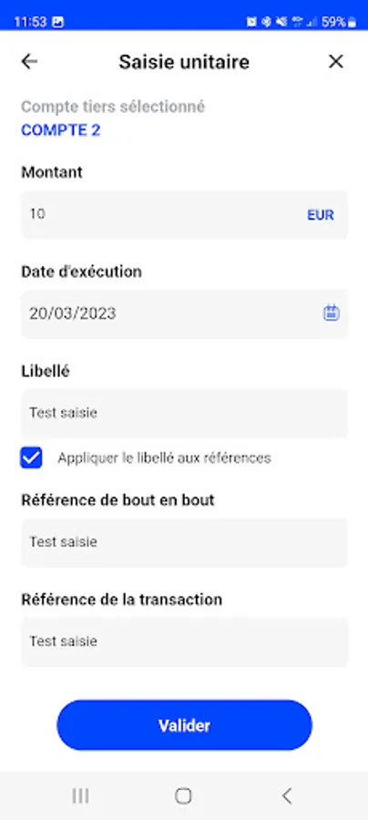 Enter a single transfer to a beneficiary registered in Cegid Relations Bancaires