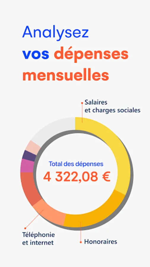 The application provides you with the analysis of income and expense items each month. Cegid Flow categorizes your company's expenses: amount, type of expense, number of transactions concerned, percentage of all expenses and allows you, with your accountant, to have an exhaustive view of your company's costs in order to anticipate and optimize future expenses.