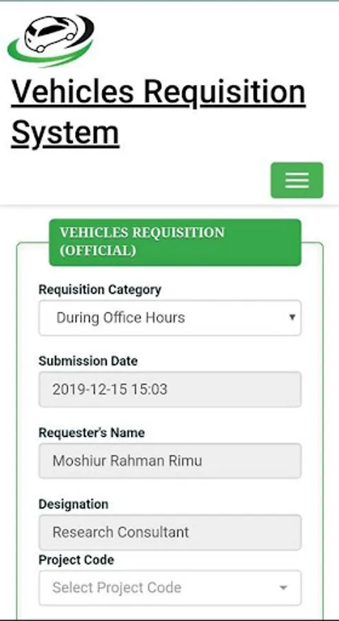 Vehicles Requisition (VR) System is a digital process of CEGIS vehicles