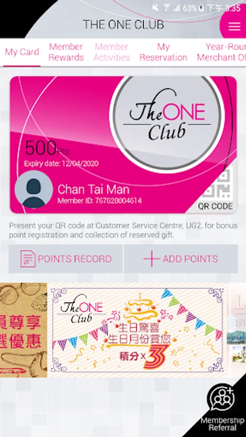 - Redeem The ONE Club Member Rewards