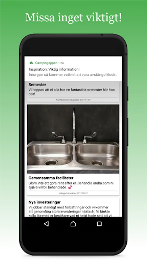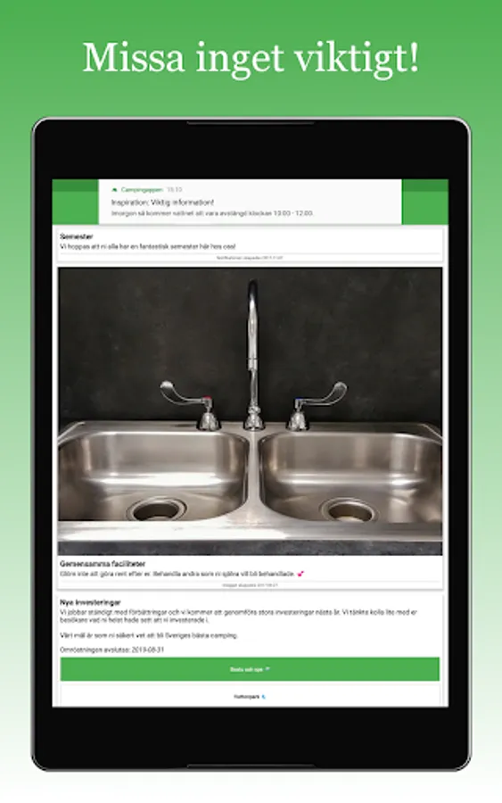 The app's function is that members should be important information on the live. The difference between a standard webpage is that on the phones you also get notices (the notifications you can open). You do not always know what is happening on the website of the camping ... When the campers' administrators create a message, the same time, a feature sends notifications to the app, which means that you do not miss a visitor!