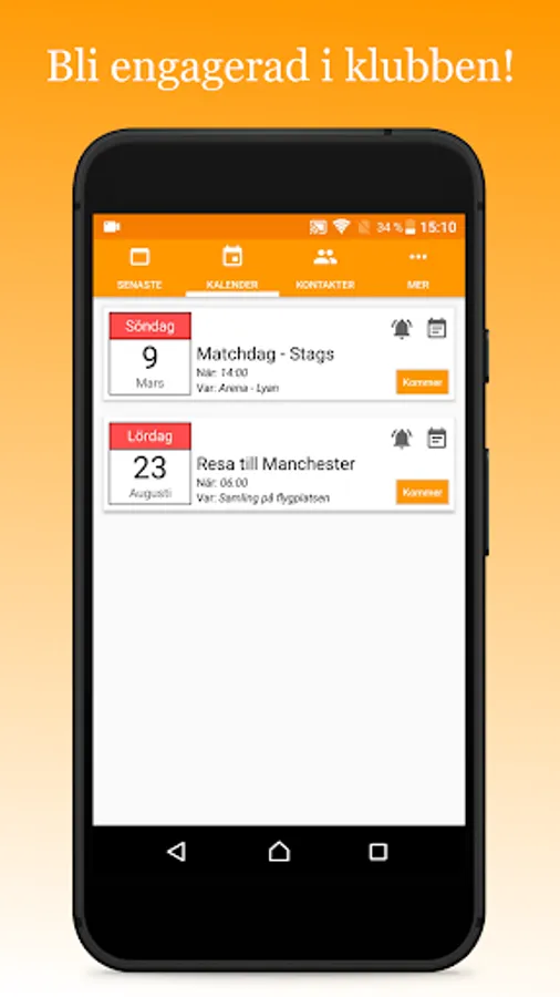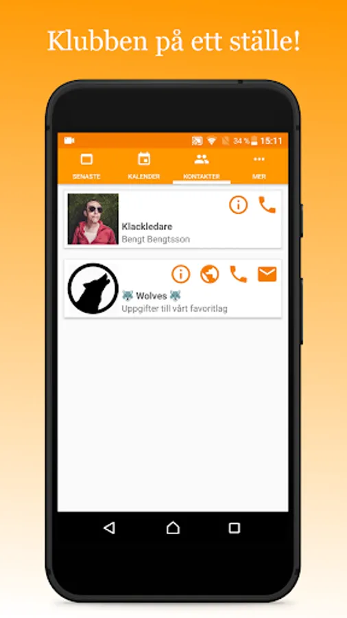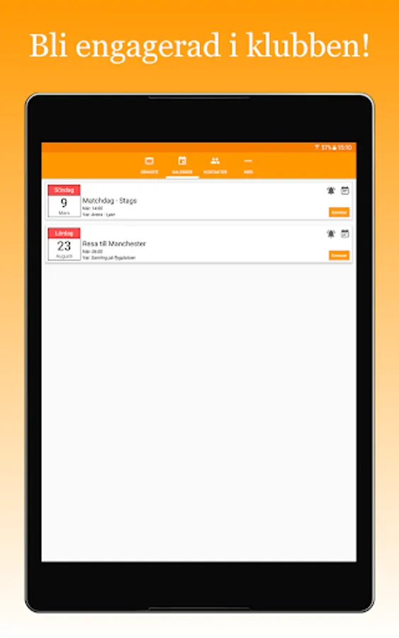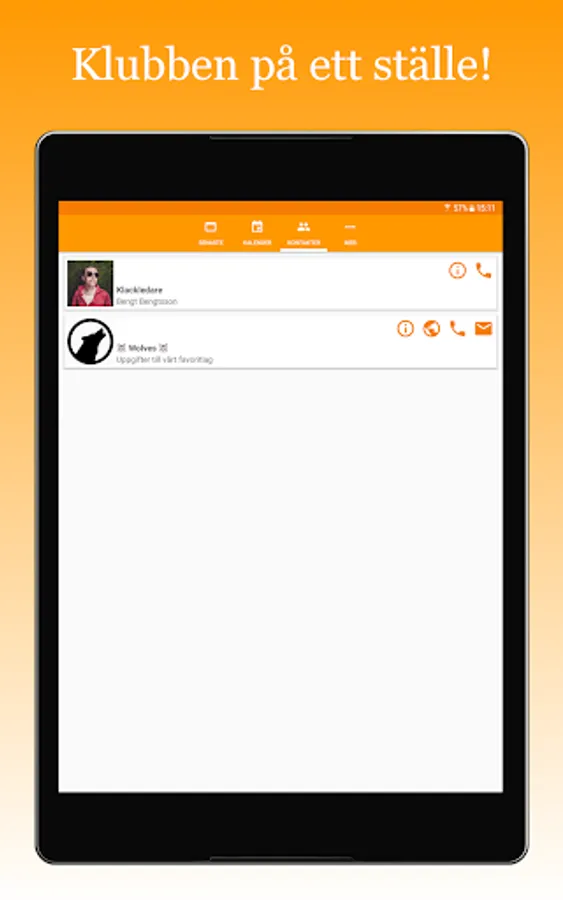 This is the android app where the information is displayed in a nice way for the club members who have an android phone. In addition to being able to see mailings, club members have access to a calendar of upcoming events, the club's contacts and the functions that the club has assisted.