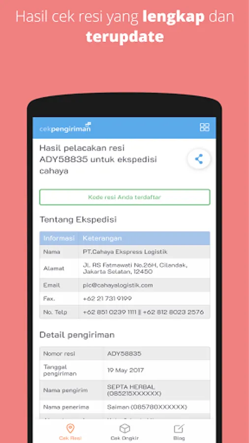 Some of the advantages of using a receipt check and postage check service from Cekpengiriman.com: