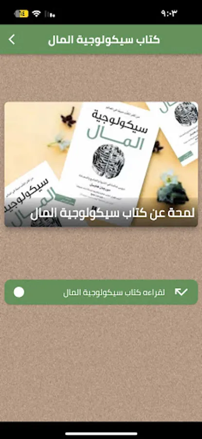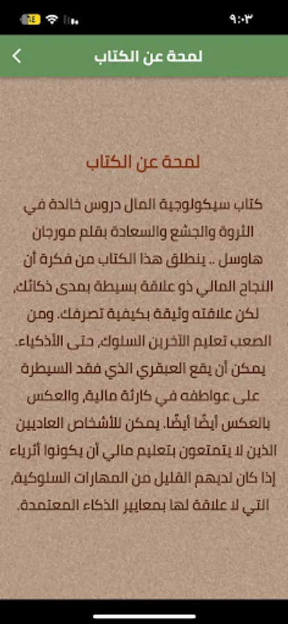 The book The Psychology of Money includes twenty chapters, each chapter deals with a feature that helps in making and preserving money, and the book is translated into Arabic, and it is written by the writer Morgan Housel.