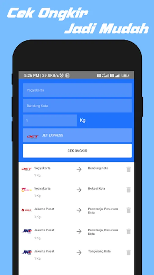This application makes it very easy for you to check delivery receipts with the many choices of shipping or expedition services in Indonesia. You can also use this application to check postage throughout Indonesia easily and quickly and in detail.