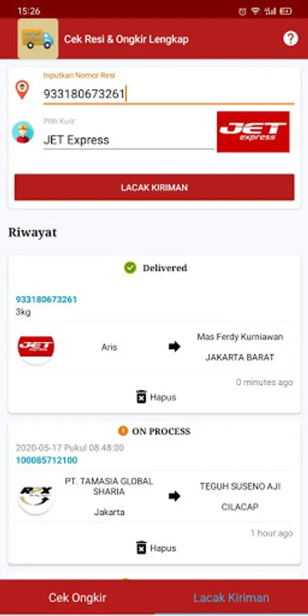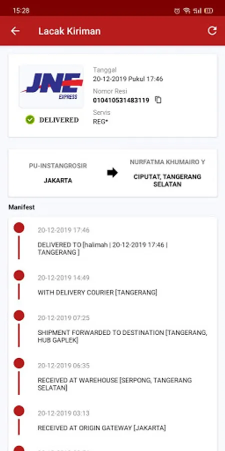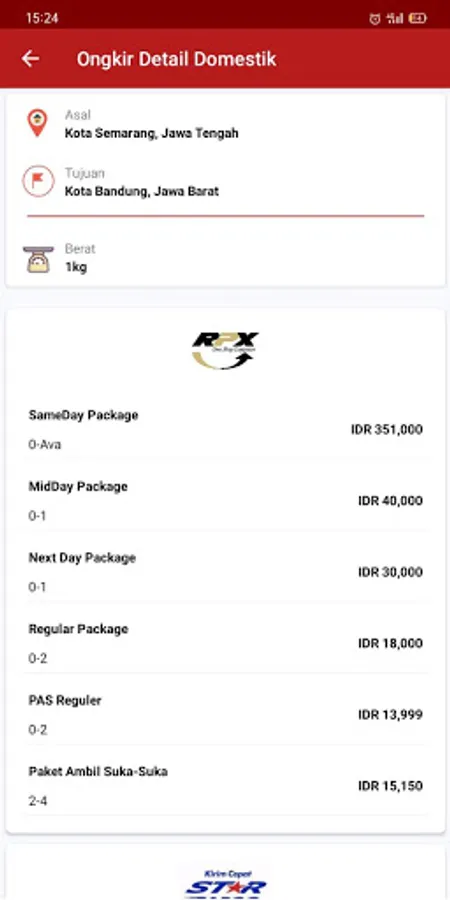 Alfatrex, AnterAja, DHL Supply Chain, DSE (21 Express), First Logistics, ID Express, Indah Logistik Cargo, JET Express, Jalan Nugraha Ekakurir (JNE), J&T Express, Jx Express, Lion Parcel, Ninja Xpress, Priority Cargo & Package (PCP), POS Indonesia, Republic Express Airlines (RPX), SAP Express, Shopee Express, SICepat, Star Express Indonesia, TIKI, and Wahana Prestasi Logistik.
