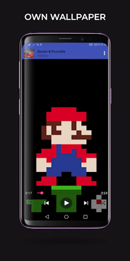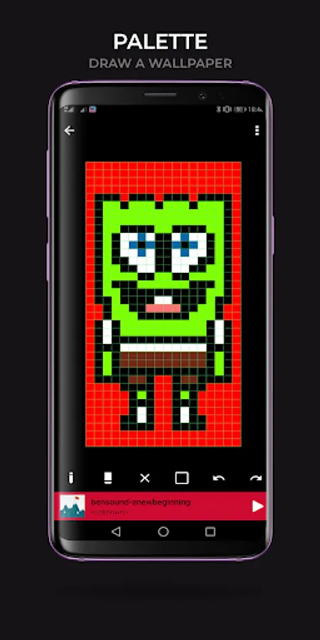 Create your own pixel art wallpaper, which makes your audio player so special and unique. Draw your favourite cartoon character, superhero, game character (Mario, Sonic, ..) or some portrait.