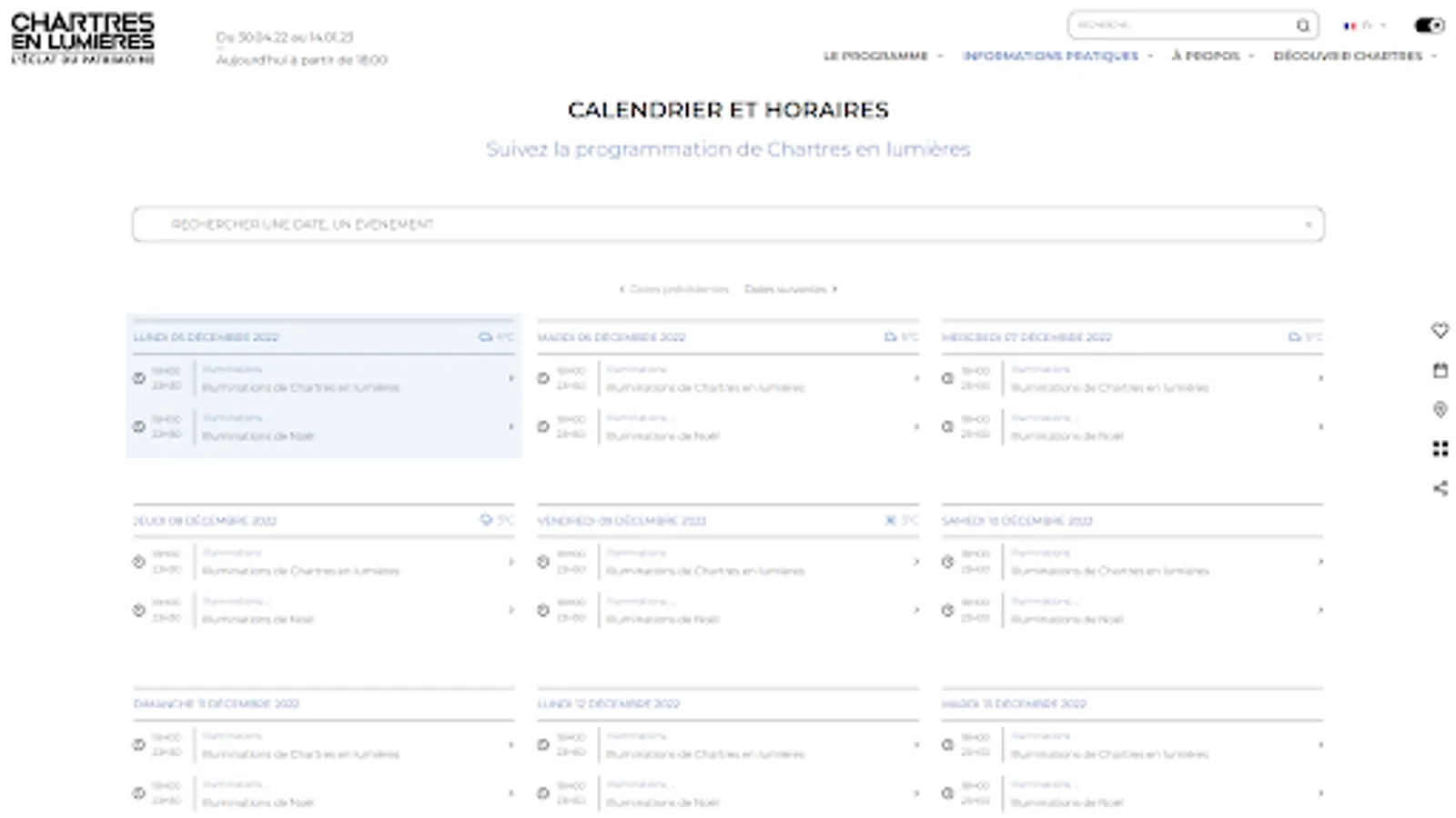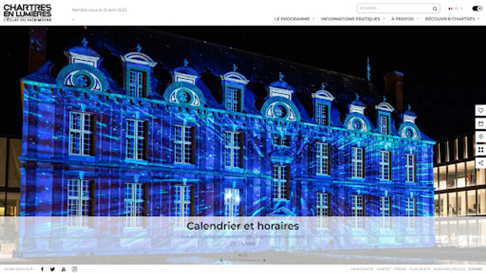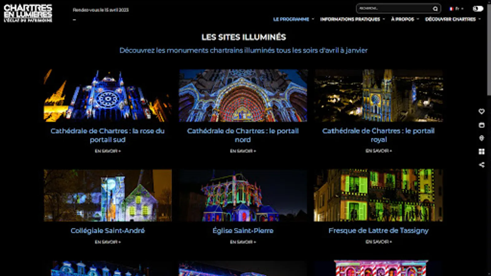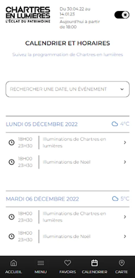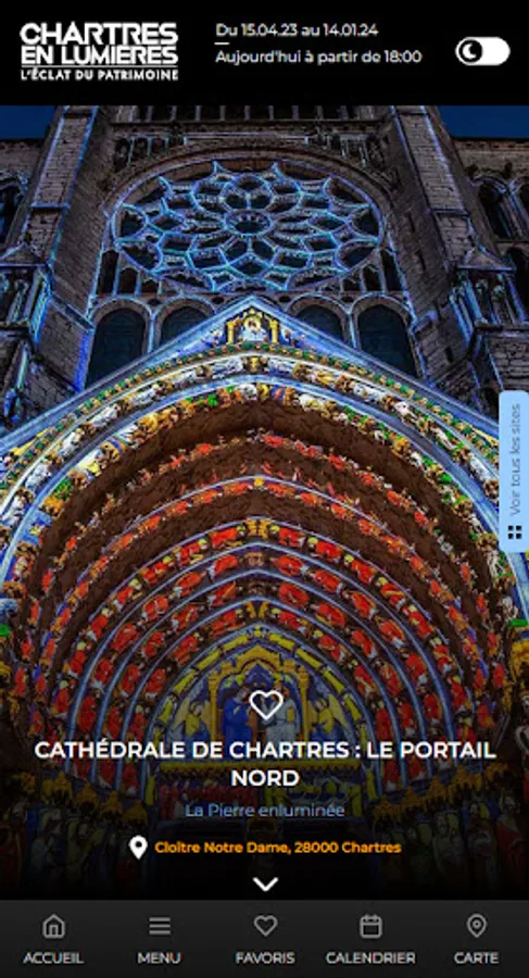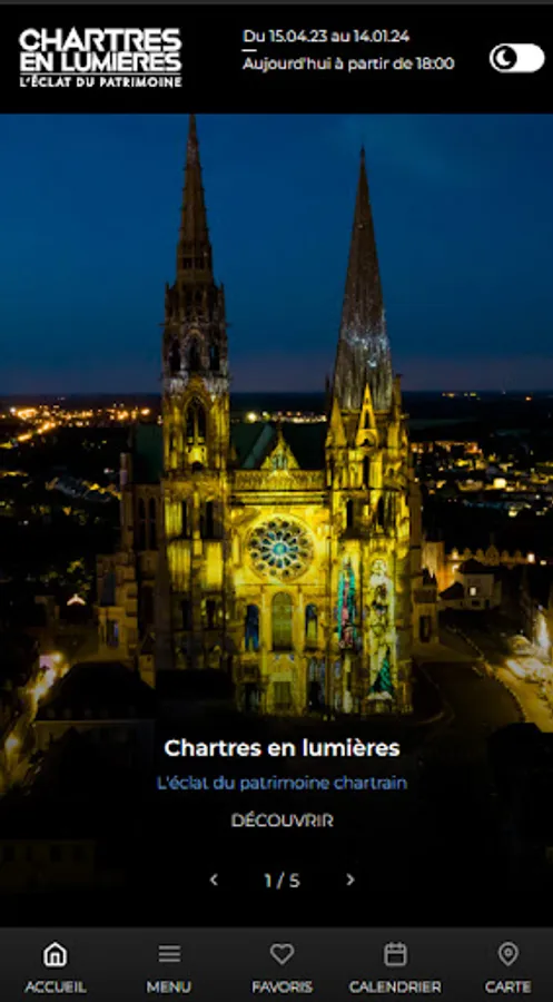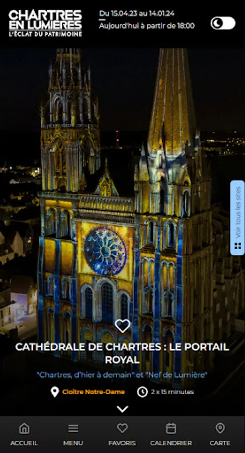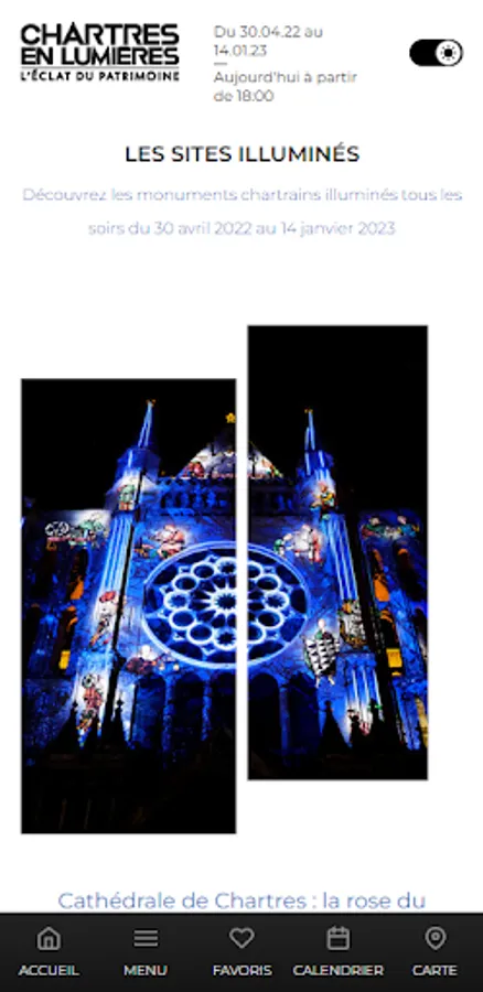You will find the functionalities and essential information to organize and enjoy your walk to meet the illuminated Chartres monuments.