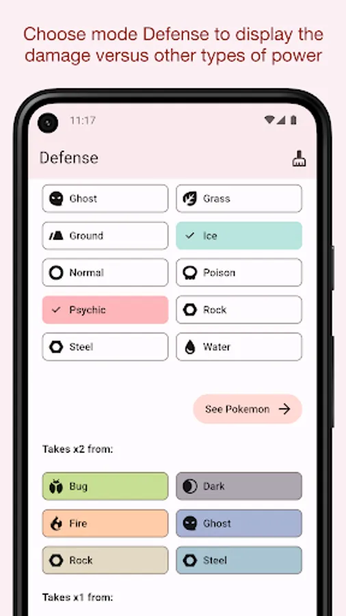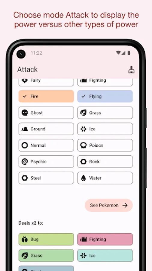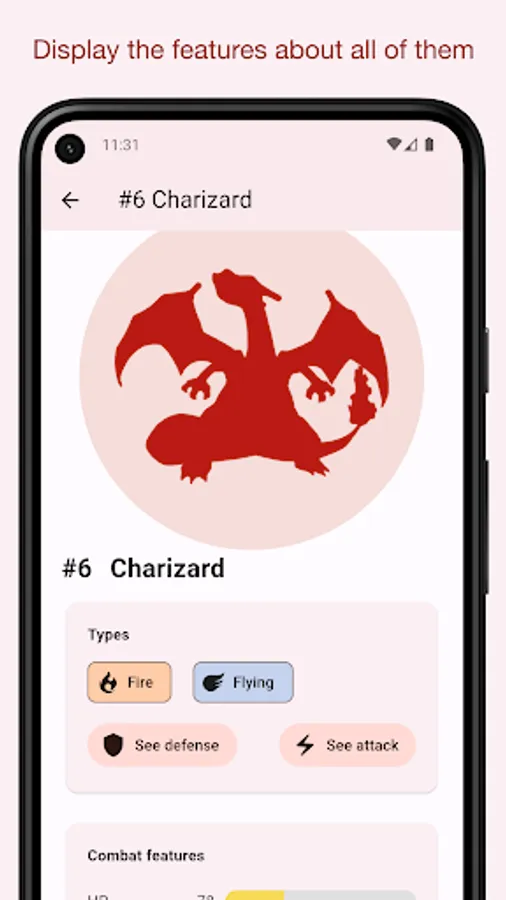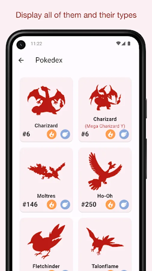 You can also view all the types of the creatures, filter by type, display their characteristics, and more!