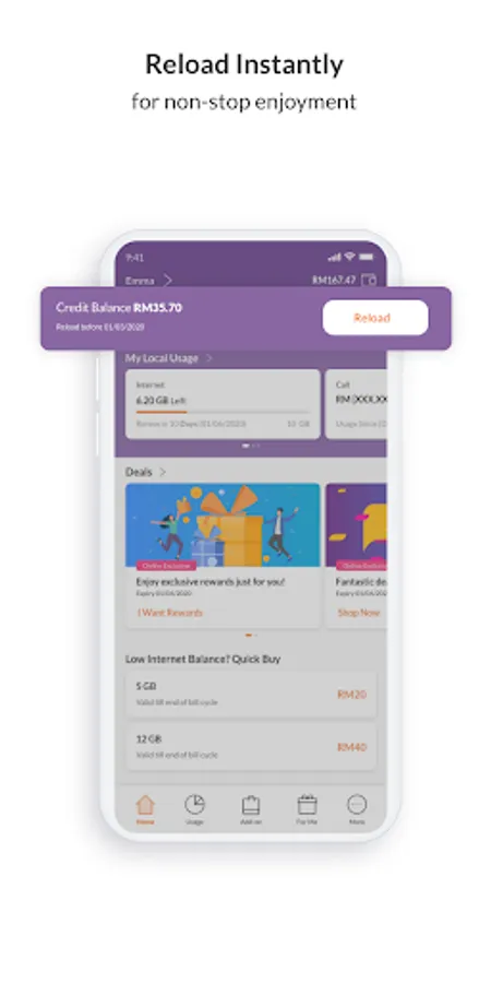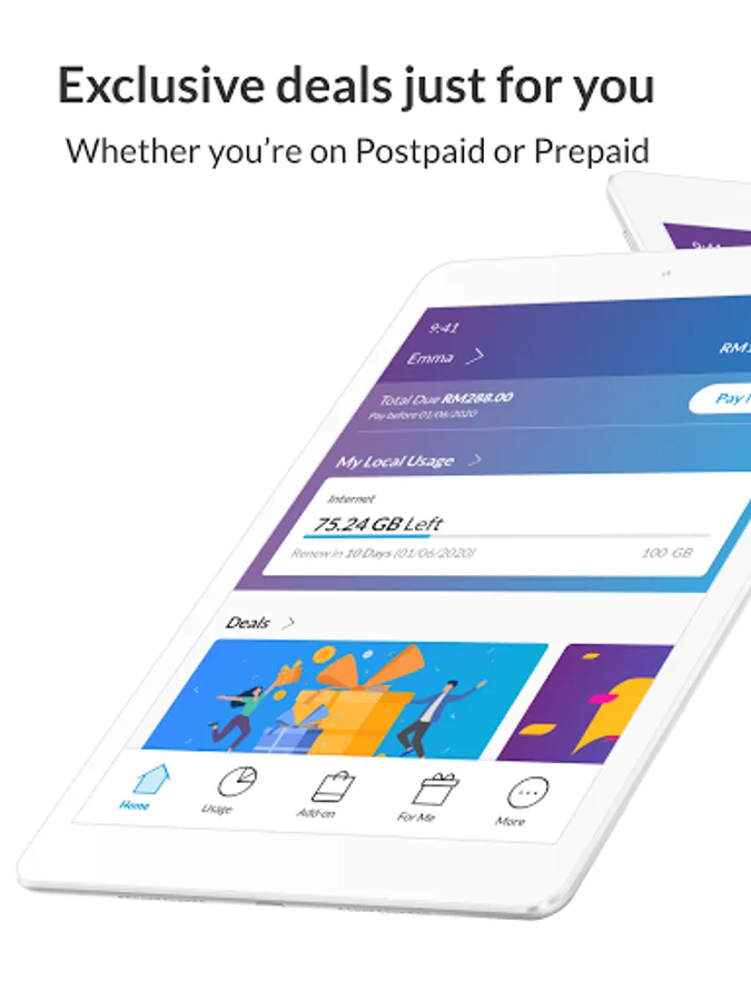 • Add-Ons: Easy subscription for Internet quota add-ons, roaming passes and more