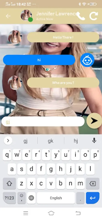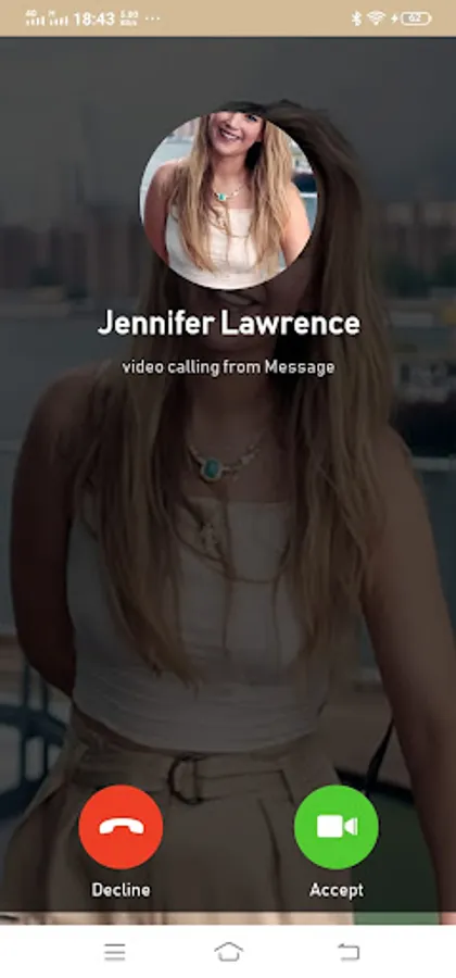 Fake videocall, chat call with Jennifer Lawrence app to helps to fun and fake chat and video call with Jennifer Lawrence.