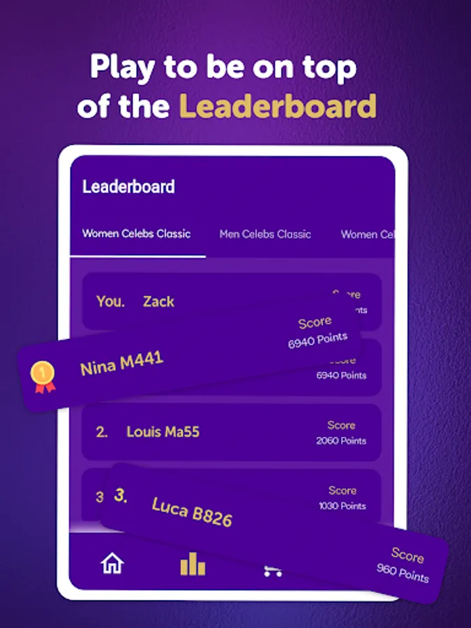 Tired of playing the classic celebrity quiz game modes alone? Well, try our multiplayer trivia game mode and play a multiplayer quiz with friends. Test and see who has the better knowledge of famous people!