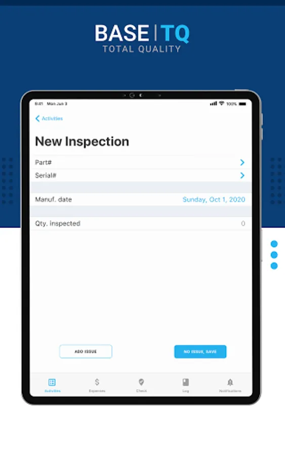 BaseTQ is an app for companies dedicated to the inspection and quality control of automobile parts. The functionality is destined to ease the work of inspection and report of defects much more easy and fast.