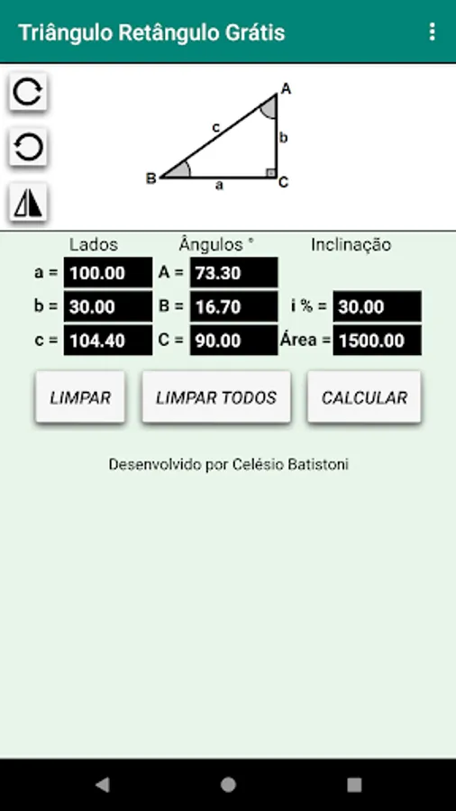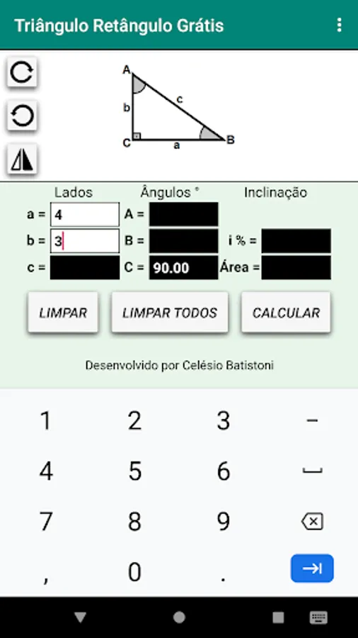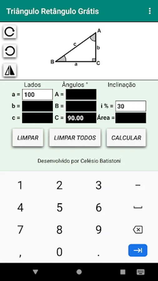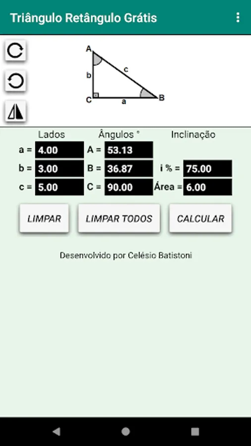 Solve the sides and angles of the triangle by entering two sides or a side and an angle to solve for the rest of the data.