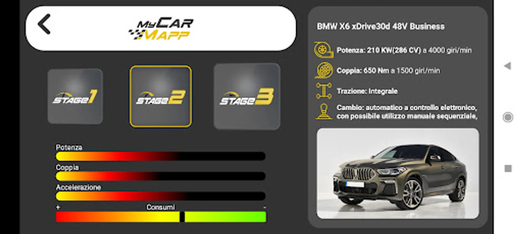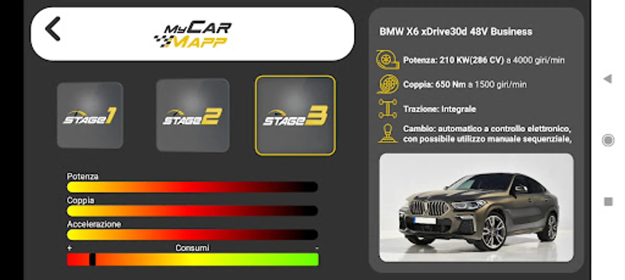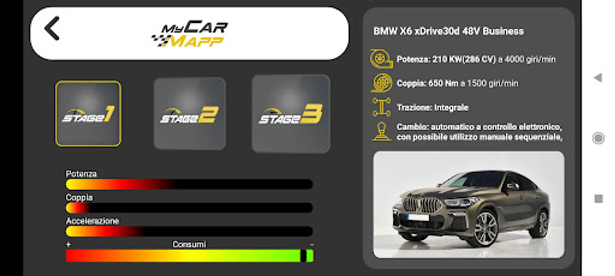 The app allows you to view and choose the optimal performance for your car, so you can customize your vehicle with your needs by adapting them to the desired driving style.