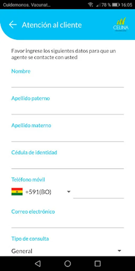 If you have any questions or want more information, write to us at 77660637 or visit our website www.celina.com.bo.