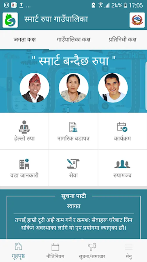 Rupa Rural Municipality from Kaski, Nepal presents SmartPalika app. It is eGovernance app for Rupa Gaunpalika under Smart Palika Technology. The app is powered by the features of Smart Palika. The motive of the smart app is to develop Rupa Gaunpalika as Smart City of Nepal. The basic features are: