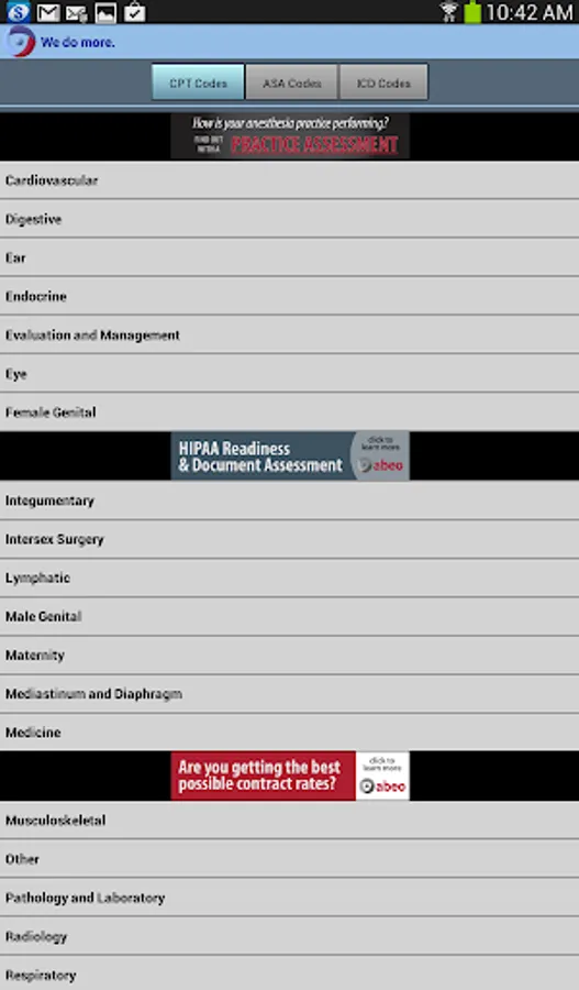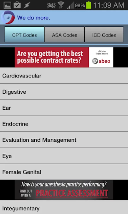 abeoCoder is intended for the use of both anesthesia and pain management clinical and practice management professionals. abeoCoder places the most current CPT®, ASA or ICD medical codes at your fingertips.