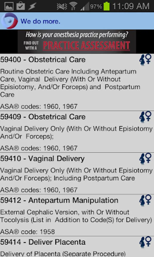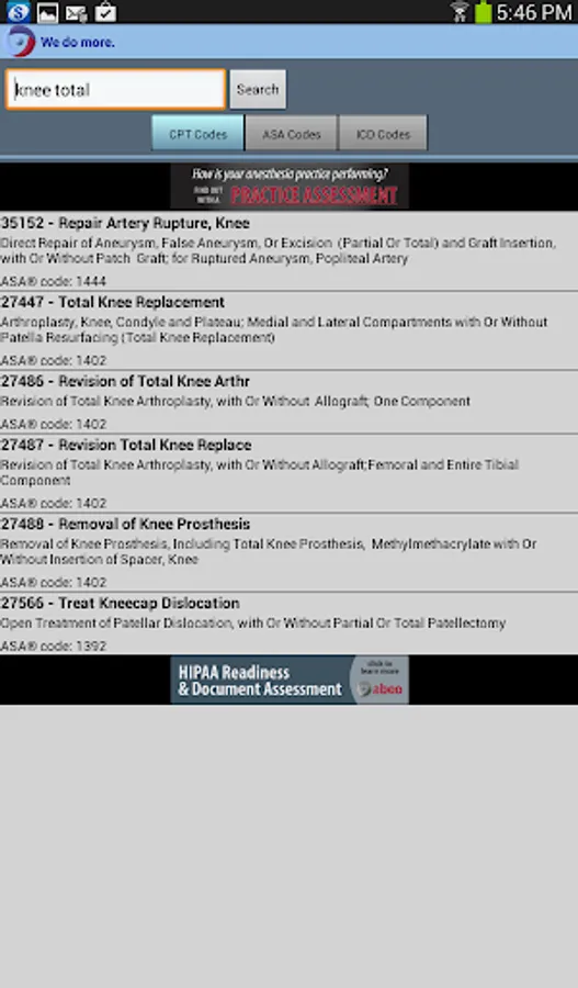 • All the most common anesthesia CPT, ASA and ICD codes