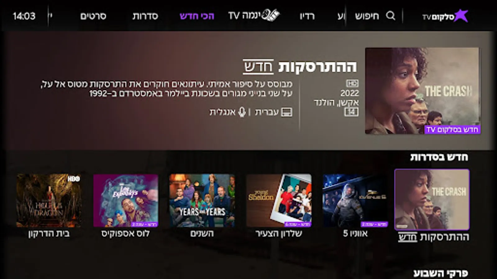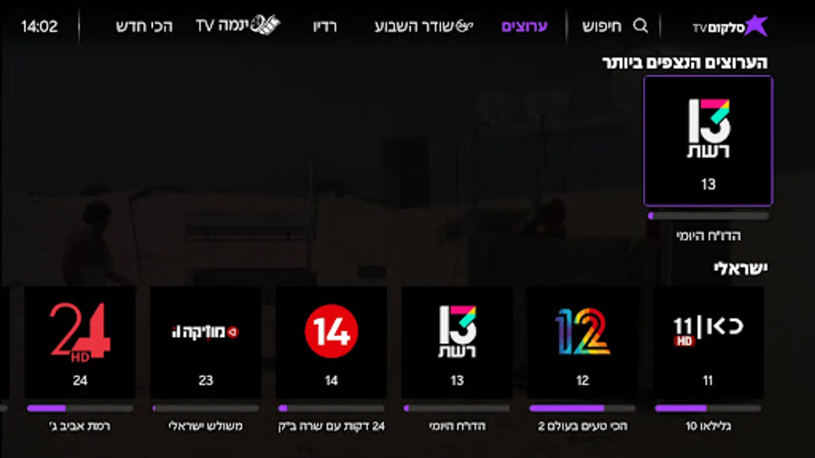 The popular TV channels in Israel and dozens of other channels, along with a rich and diverse VOD library that includes blockbuster movies as well as all-time classics, leading series, content that children and toddlers love, a selection of prime time programs, docu-nature programs, radio stations, podcasts and more.