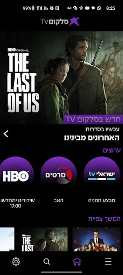 The most popular TV channels in Israel and dozens of other channels, alongside a rich and diverse VOD library that includes blockbuster movies and all-time classics, leading series, content that children and toddlers love, a selection of prime time programs, docu and nature programs, radio stations, podcasts and more.