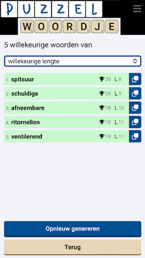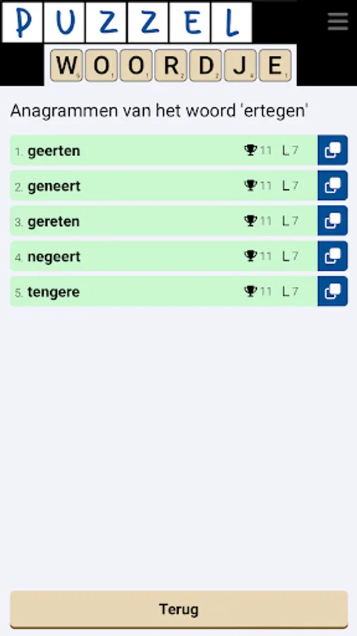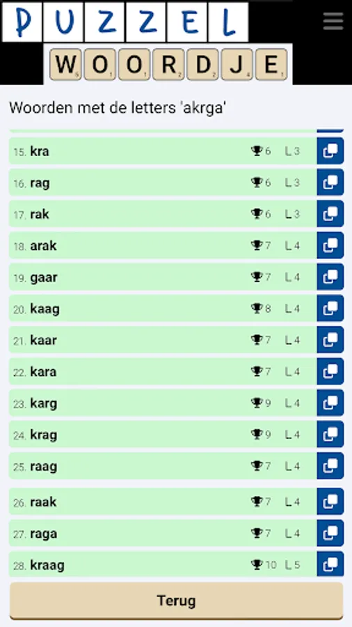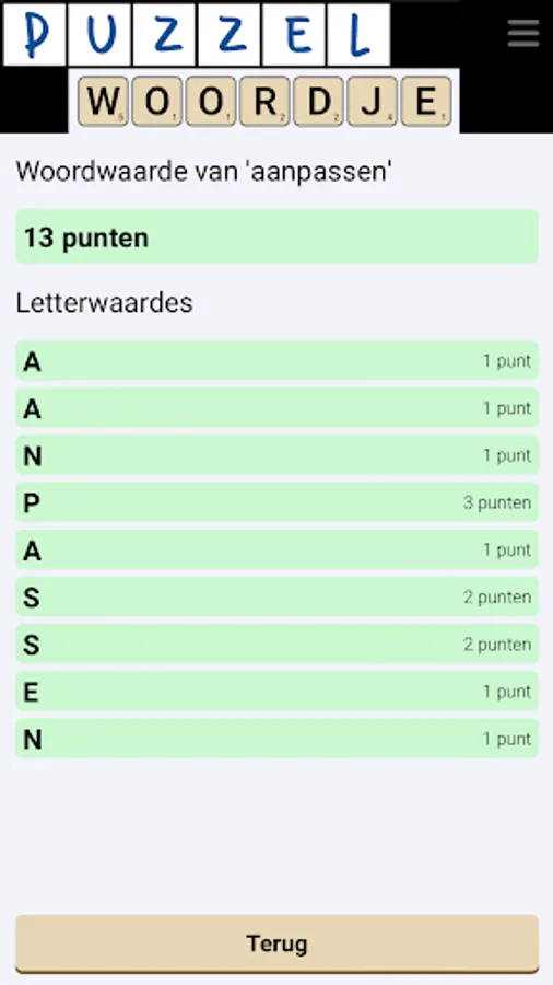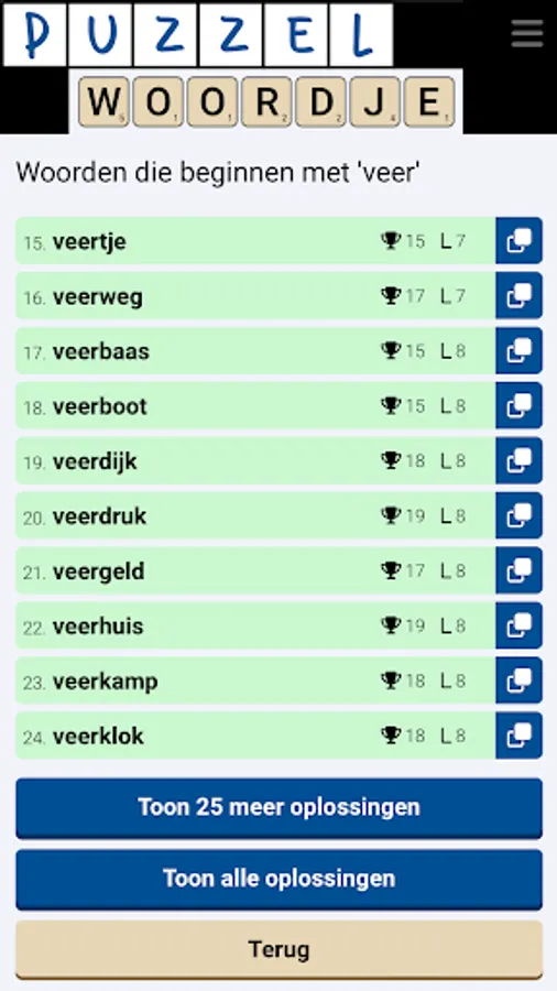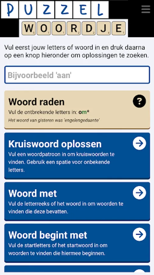 As a free puzzle dictionary app, Puzzlewordje offers puzzlers the opportunity to search for Dutch word solutions through various word puzzle solvers.