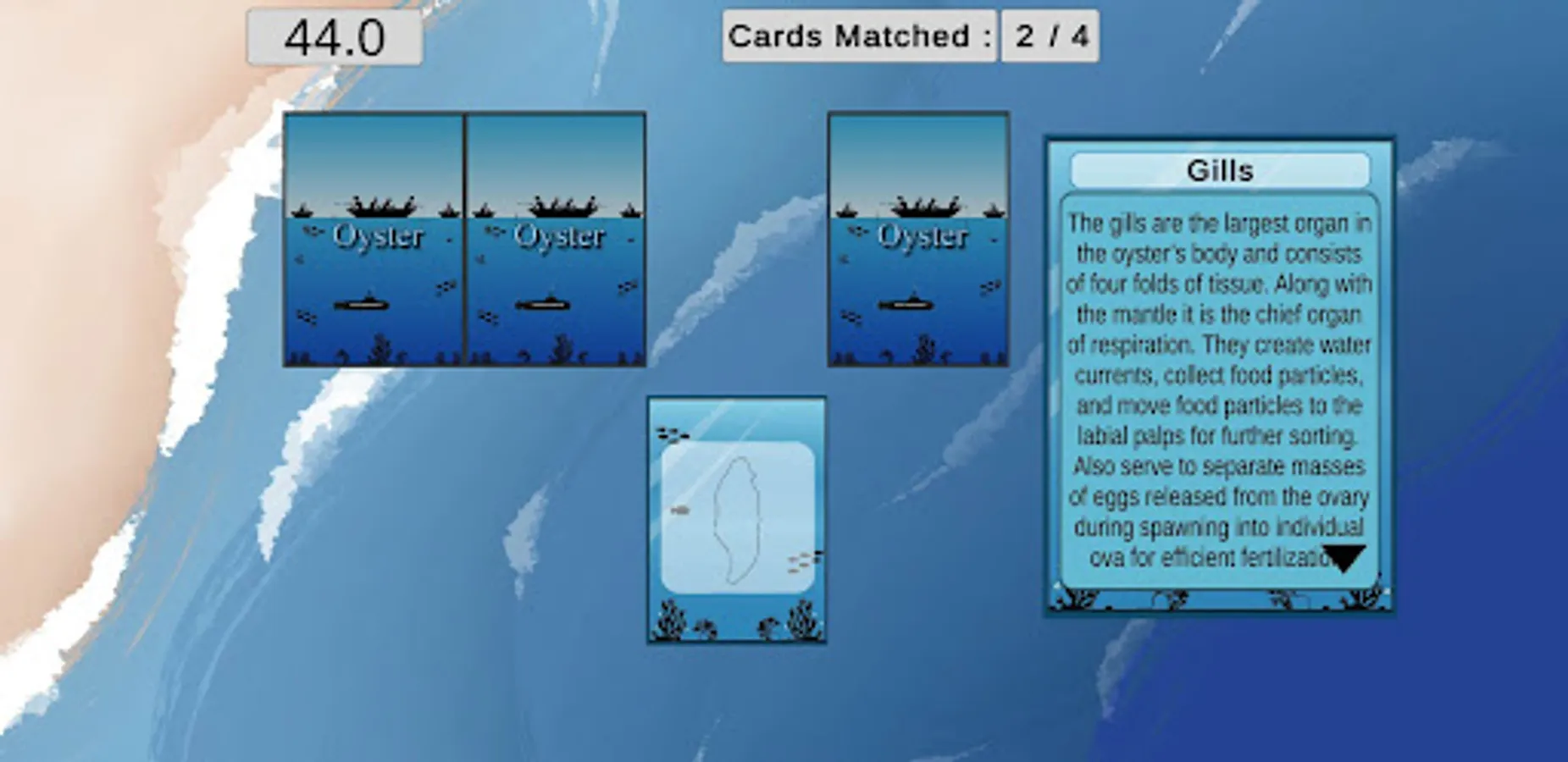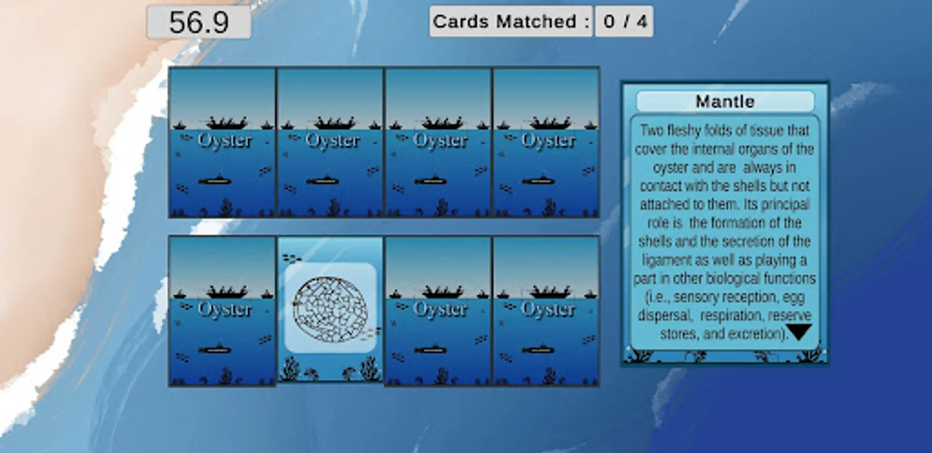 Oyster Card Matching is an educational matching game about the anatomy of an oyster. Compete against the timer to see how quick you can match the images with their correct name. Don’t know anything about oysters? That’s alright! Visit the encyclopedia first, then test your memory with a round of Oyster Card Matching! Brought to you by Bethune-Cookman University (BCU) and CelleC Games.