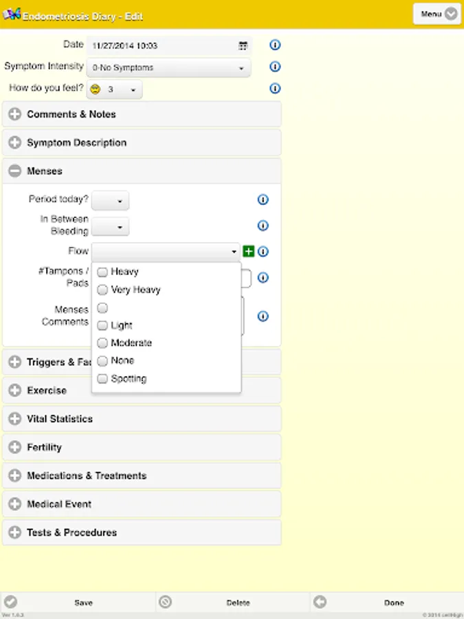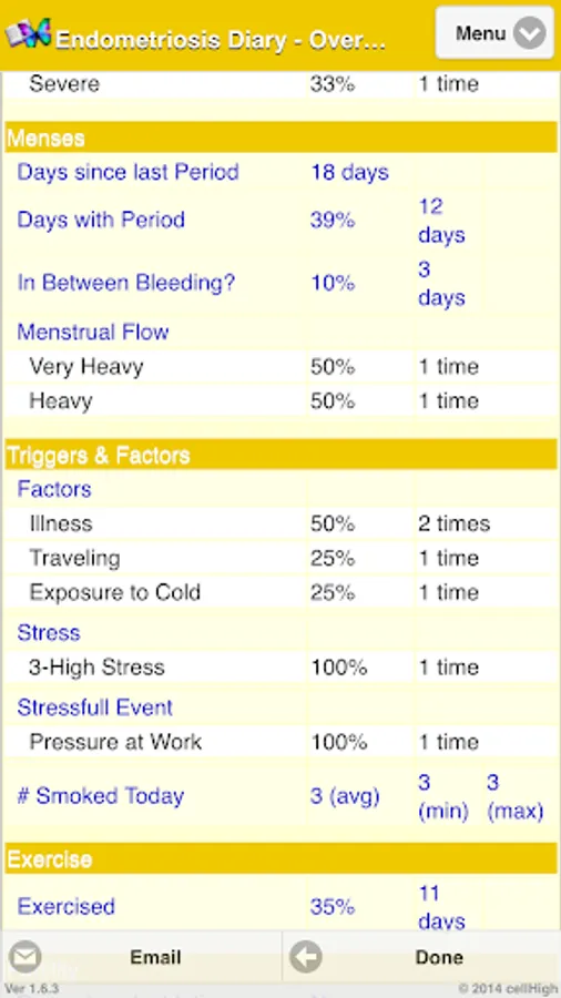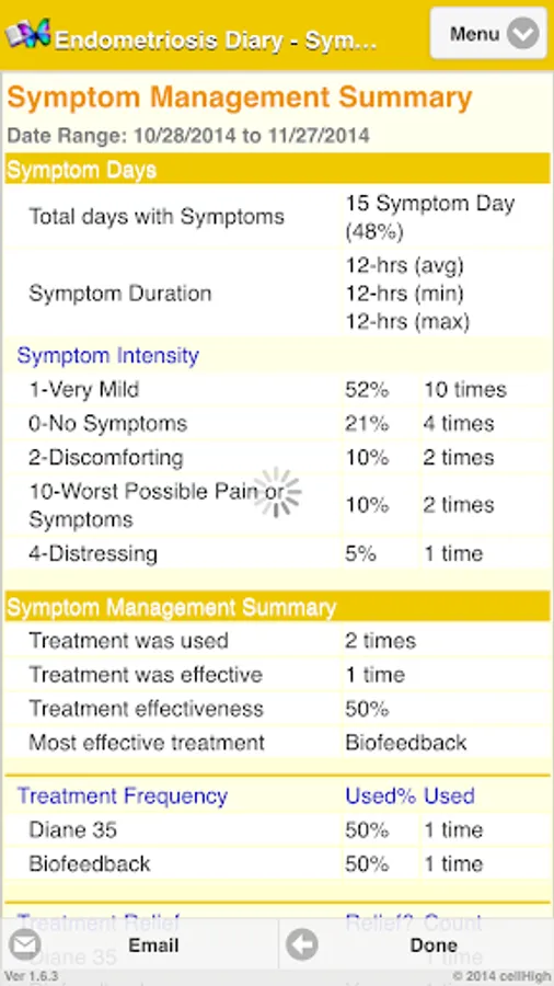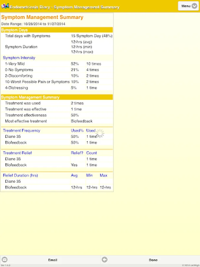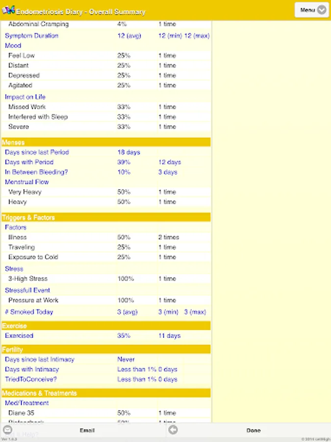 Are you like one of the millions of people who have Endometriosis? How can the Endometriosis Diary help? The Endometriosis Diary was designed to track information about your Endometriosis with a few screen taps. Using this information, the application will allow you to use triggers, like day of month and week and diet to predict and manage your Endometriosis. The Endometriosis Diary has a new “Trending and Forecasting” module that shows you which factors and triggers contribute to your pain and symptoms. This will help you feel better and will allow you to take control of your Endometriosis. The Endometriosis Diary makes it easy to perform tasks like tracking your treatment progress, graphing your patterns, emailing reports, including graphical attachments to your doctor and advisors. The Endometriosis Diary will also allow you to export your data to a spread sheet all with just a few screen taps. Do you want all of your health records and information at your fingertips so that you can start feeling better. The Endometriosis Diary can help.