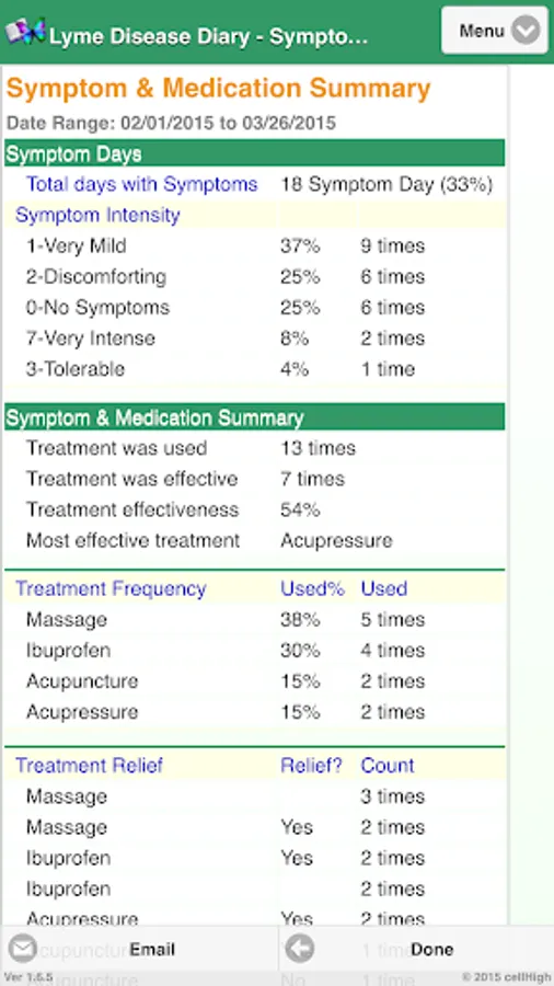 - Graph your patterns of experiences, email reports, including graphical attachments to your doctor so that they can help you adjust