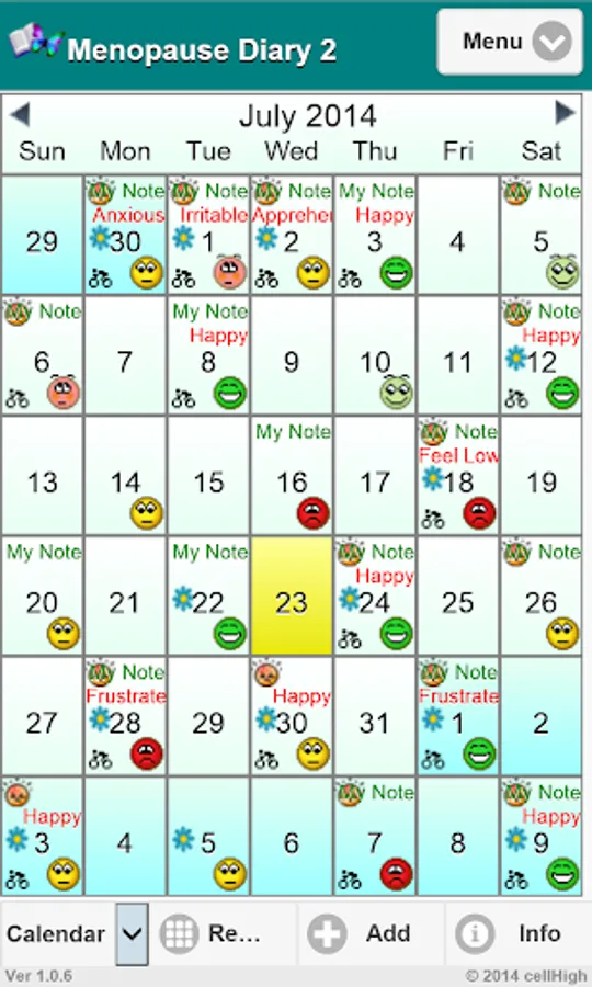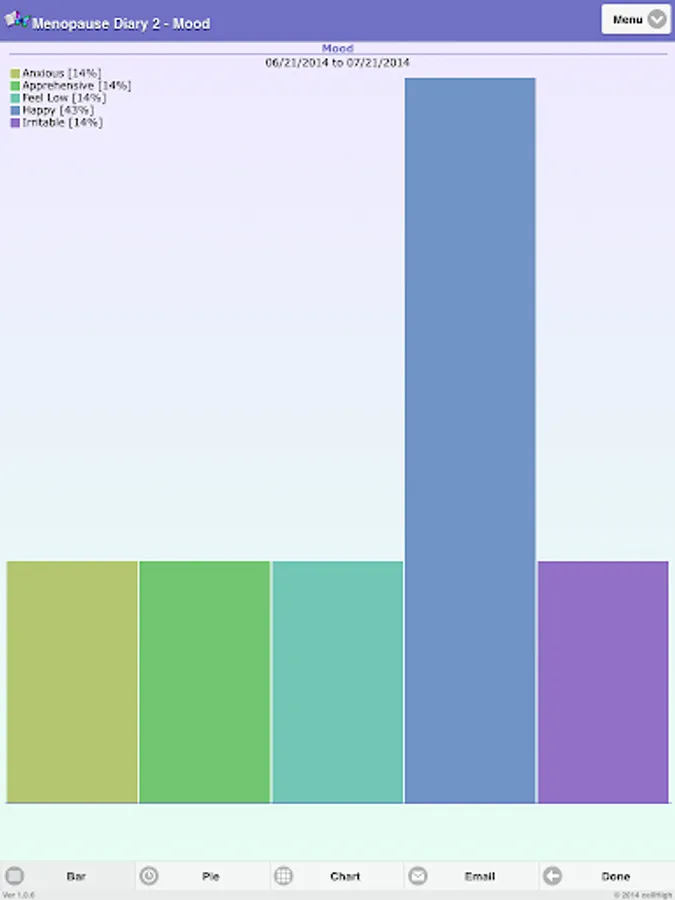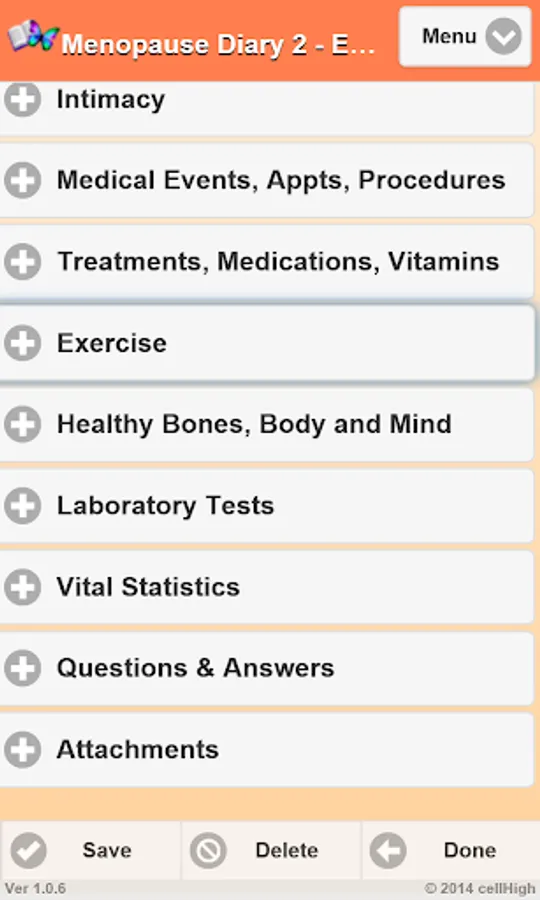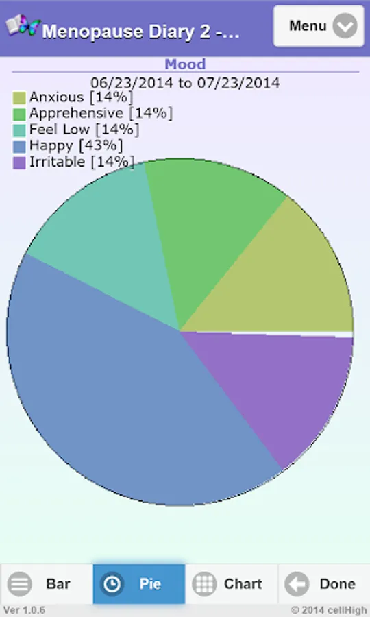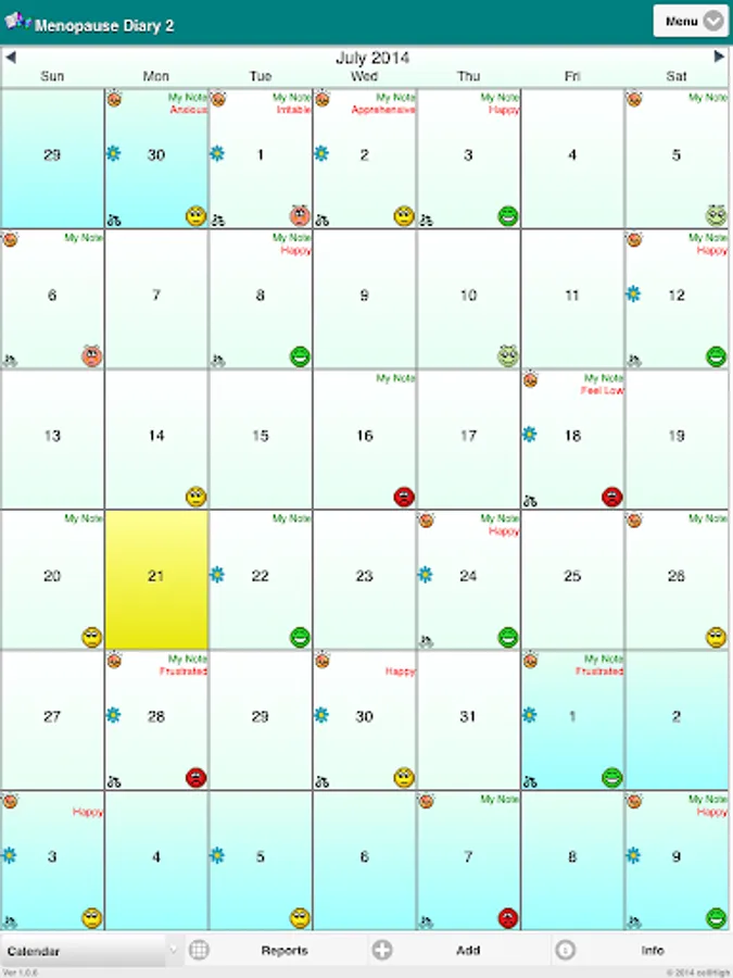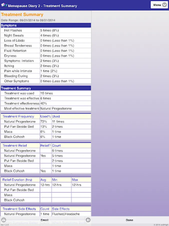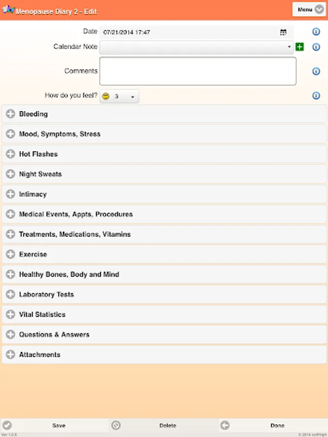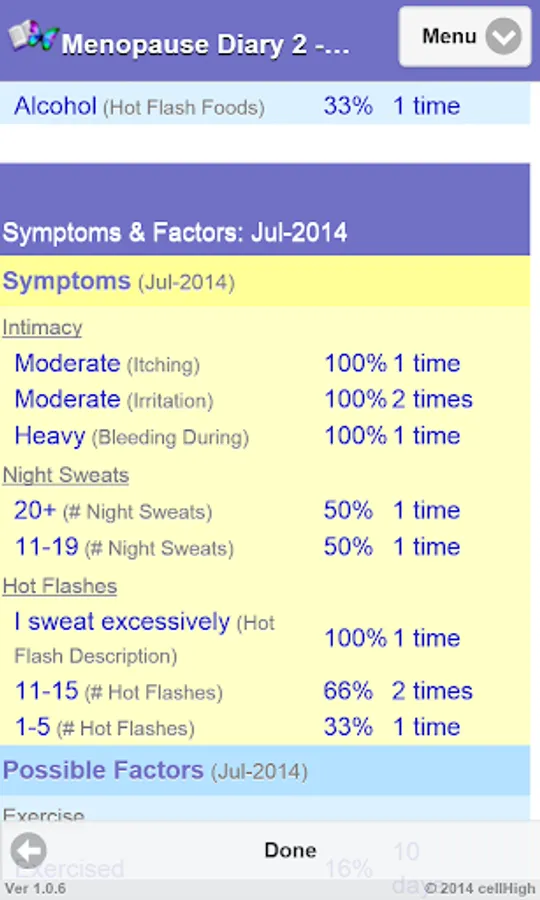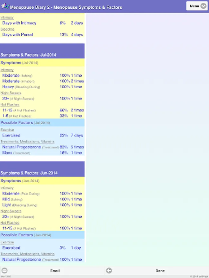 Are you like one of the millions of women who are adjusting to this new stage in your life or not even sure if you are in menopause? Women in menopause, perimenopause, and postmenopause can experience forgetfulness, night sweats, hot flashes, intimacy issues to name some of the symptoms. We also are at greater health risks for coronary artery disease and osteoporosis. Women going through this new stage of her life can benefit with lifestyle changes and by recognizing your symptom patterns and trends. How can Menopause Diary help? Menopause Diary 2 has a new “Symptom and Factors” module that shows you which factors could be contributing to your symptoms. It makes it easy to keep track of all of your Menopause health records and information. This will help you feel better and will allow you to take control of your Menopause. Menopause Diary 2 makes it easy to keep track of your Menopause experiences, health records, graphing your patterns, and emailing reports. Do you want all of your Menopause records and information at your fingertips so that you can start feeling better. Menopause Diary 2 can help.