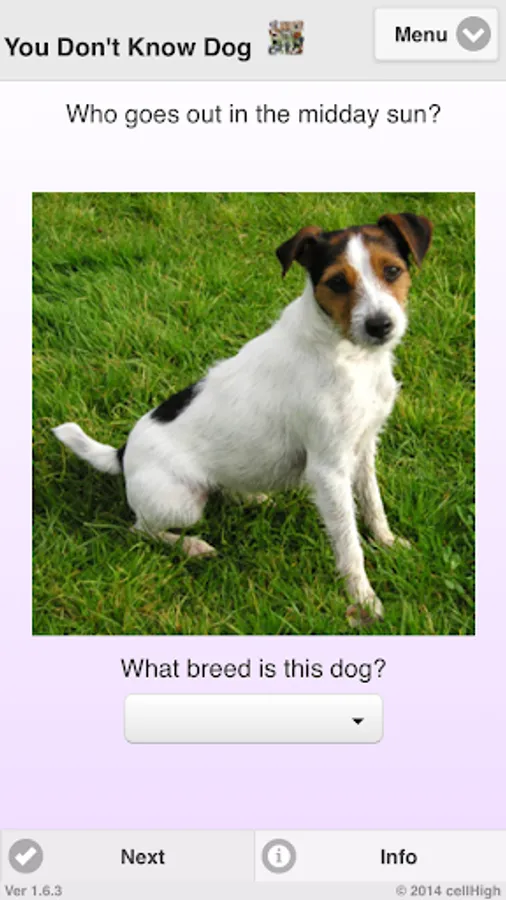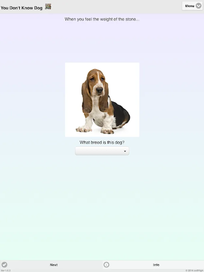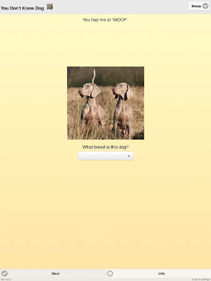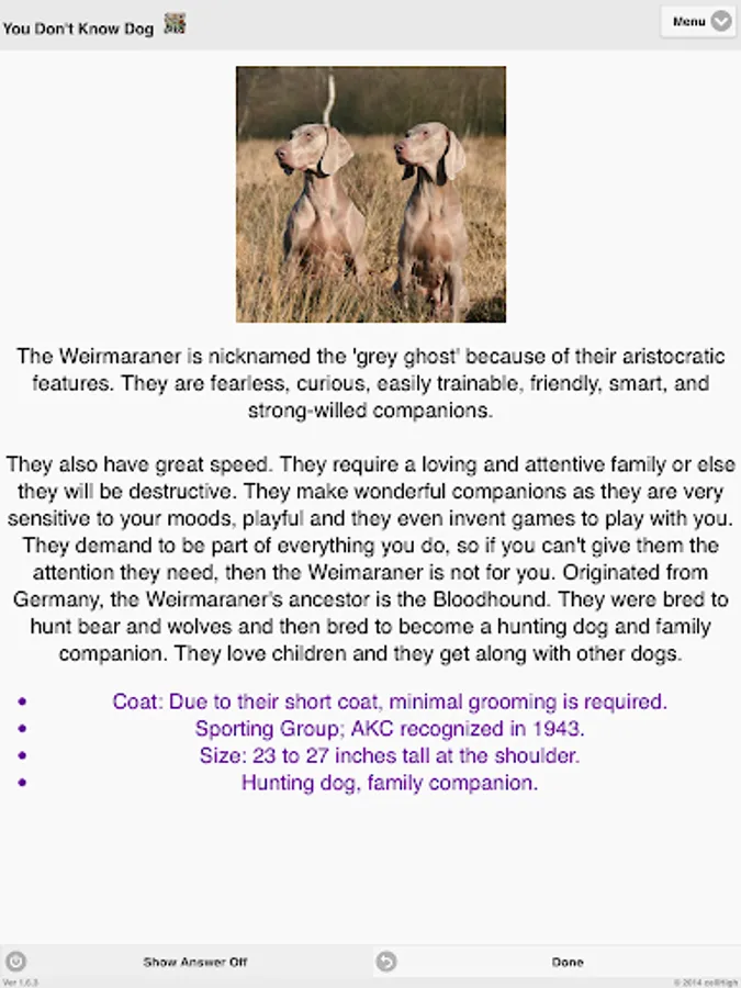 You Don’t Know Dog randomly generates tests that require only a few screen taps to complete. View additional information about dog breeds and their characteristics.