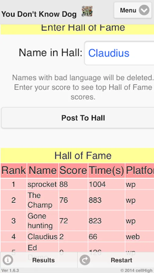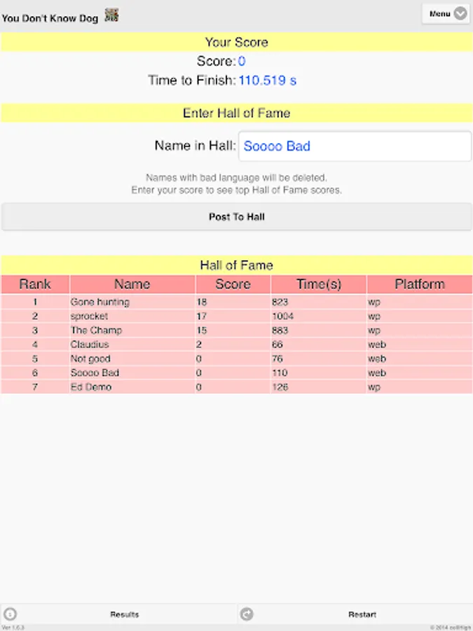 Support for the application includes a support website and a "Hall of Fame". If you choose to, you can compare your score and knowledge with others in the Hall of Fame.
