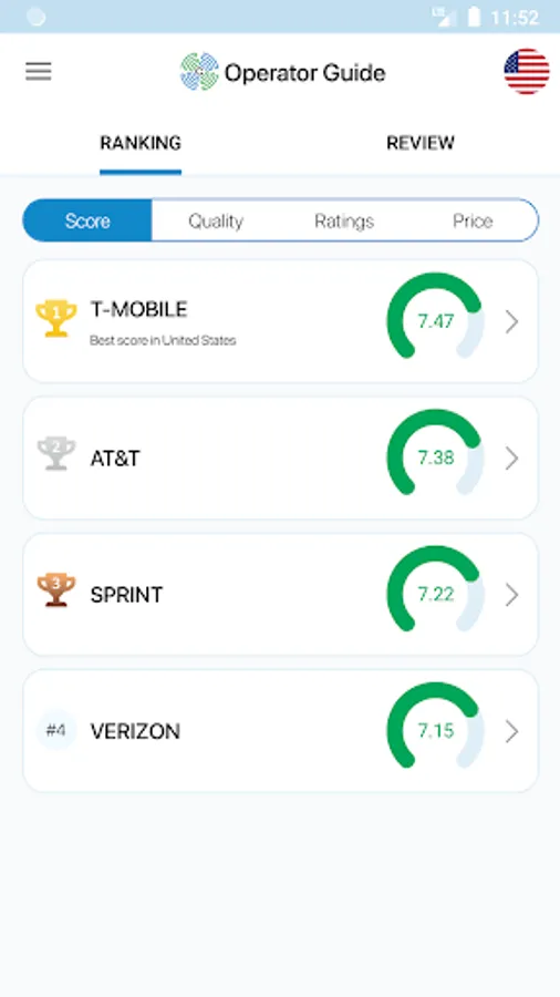 For the price comparison CellRebel evaluates each mobile operator’s price packages in detail. The prices are then translated into a price score to make it easy for the users to compare.